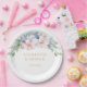 Assiettes En Carton Élégant Mariage de Fleurs Roses Bleues