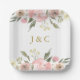 Assiettes En Carton Élégant Mariage de monogramme rose rose or