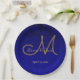 Assiettes En Carton Élégant Monogramme floral or bleu marine
