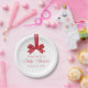 Add a festive touch to your celebration with these elegant baby shower paper plates featuring a red watercolor ribbon and bow at the top of the design. “Baby Shower” is displayed in graceful red calligraphy, with space below to personalize with the mother-to-be’s name and shower date. A perfect choice for Christmas or winter baby showers, these plates bring a coordinated, polished look to your table setting.