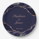 Assiettes En Carton Élégant Rose bleu marine Mariage d'agate d'or de