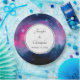 Plaques en papier mariage avec un beau design abstrait en rose et bleu. Des étoiles blanches parsemèrent cette image du cosmos. Trippy et cool. Un cercle blanc avec une bordure noire superposée avec votre texte à l'intérieur.