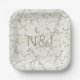 Assiettes En Carton Élégant Sage Vert Marbre Monogramme Plaques de pap