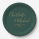 Assiettes En Carton Élégant Script Emerald Vert Et Mariage Or