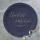 Assiettes En Carton Élégant Signature Script Marine Mariage bleu or