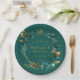 Assiettes En Carton Elégant Turquoise et or Aquarelle Mariage floral