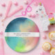 Plaques en papier avec un design abstrait cool et élégant. Les aquarelles se mélangent pour créer l'illusion d'une image spatiale. Vert avec des tourbillons de violet, jaune et rouge clair se mélangent avec un peu de points et d'étoiles blancs. Une élégante création artistique.