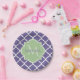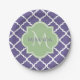 Assiettes En Carton Élégant violet Quatrefoil et nom vert Monogramme