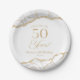 Assiettes En Carton Elégante White Gold Agate 50e fête d'anniversaire