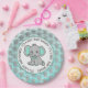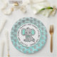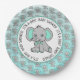 Assiettes En Carton Eléphant turquoise et gris Baby shower à thème
