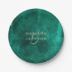 Assiettes En Carton Emerald Green Aquarelle & Mariage Or Monogramme