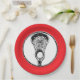 Plaques d'évènements de la crosse ou de l'équipe mettant en vedette des bâtons de laxisme sur arrière - plan rouge.