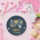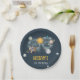 Célébrez le jalon spécial de votre enfant avec cette magique plaque d'anniversaire thématique de l'espace extra-atmosphérique. Avec des planètes imaginaires, la lune et les étoiles en couleur marine et or. Ces Plaques de papier Galaxy Sun Moon Stars and Planets Space Birthday sont parfaites pour une simple fête d'anniversaire. Le design moderne et fantaisiste met en scène un arrière - plan bleu marine couleur aquarelle orné d'un soleil éclatant jaune, d'une lune grise souriante, de planètes aux couleurs pastel et d'étoiles dorées éparpillées.