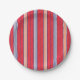 Ce dessin est composé d'un arrière - plan rouge texturé avec des rayures verticales en orange, bleu et blanc, #stripes #summer #beach #nautical #party