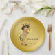 Plaques en papier baby shower d'abeilles avec adorable petite fille ethnique portant une tenue d'abeilles mignonette sur un riche arrière - plan en or avec des abeilles volantes. Vous pouvez ajouter du texte pour personnaliser ces plaques de papier baby shower d'abeilles noir et or, et vous pouvez supprimer l'arrière - plan or pour ajouter la couleur de votre choix.