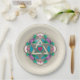 Ces assiettes en papier qui correspondent à la plus récente planche de charcuterie Shabbos de Jewbilee. La peinture digitale originale de Leslie Sigal Javorek donne l'illusion de poteries jetées à la main, un mandala de style Art Nouveau, au coeur de Star of David, entouré de fleurs très stylisées.