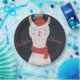 Design amusant mais élégant d'un lama mignon chantant des cantiques de noël en rouge, tricoté casquette avec une manteau sur le dessus et une écharpe d'hiver. Customisez le texte avec l'option modèle facile. Art et design par Mira