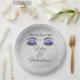 Célébrez l'anniversaire du cinquantième anniversaire avec cette élégante et glamour plaque de papier rond noir et périwinkle fête d'anniversaire. Orné d'yeux rayés bleus perruqueux et d'éclats de losange. Personnalisez-le avec un nom. Créé par Simply Farmhouse Press sur Zazzle.