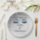 Célébrez le jalon du cinquantième anniversaire avec cette élégante et glamour plaque de papier rond d'anniversaire noir et bleu. Orné d'yeux rayés bleus et d'éclats de diamants. Personnalisez-le avec un nom. Créé par Simply Farmhouse Press sur Zazzle.