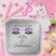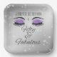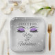 Célébrez le jalon du cinquantième anniversaire avec cette élégante et glamour plaque de papier carré noir et violet anniversaire. Orné d'yeux brillants violets et de éclats de diamants. Personnalisez-le avec un nom. Créé par Simply Farmhouse Press sur Zazzle.