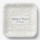 Personnalisez ces jolies plaques de papier Mariage en dentelle blanche Faux à utiliser à votre réception de mariage ou douche nuptiale. Ces élégantes plaques jetables personnalisées de mariage comprennent une photographie rapprochée de dentelle blanche complexe.