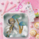Fée adorable en vert avec un énorme champignon qui ressemble à un arbre