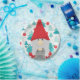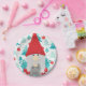 Super fun et mignon pour cette saison de vacances. Ce design présente un gnome amusant avec des cheveux gris en deux tresses attachées avec des rubans rouges, dans un grand casquette rouge contre un arrière - plan des arbres de Noël dans les tons turquoise et rouge boules de Noël.