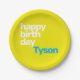 happy Birthday minimaliste simple moderne plaque de papier jaune enfants fête heureux anniversaire minimal moderne bleu blanc blanc minimaliste plaque vaisselle pour enfants nom garçon ou fille Facile à éditer ou personnalisée. Le style de police, la taille et les couleurs peuvent être modifiés. Éléments correspondants disponibles. Autres couleurs autres que le jaune