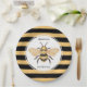 Plaques de fête d'anniversaire mignonnes et modernes avec rayures noires et jaunes avec une belle illustration d'une abeille