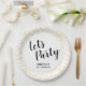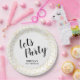 Ce design élégant mais ludique de fête d'anniversaire comprend une typographie de script "Let's Party" en noir encadrée par des confettis en faux feuille d'or. Il vous suffit de personnaliser le nom et le texte en fonction de votre célébration. (Note : Le look or du confetti est réalisé avec une image imprimée, et n'est pas de l'encre métallique ou du papier d'aluminium.)