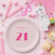 Assiettes En Carton Fête d'anniversaire moderne 21e Vingt et une rose