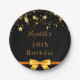 Assiettes En Carton fête d'anniversaire noir étoiles d'or moderne mono