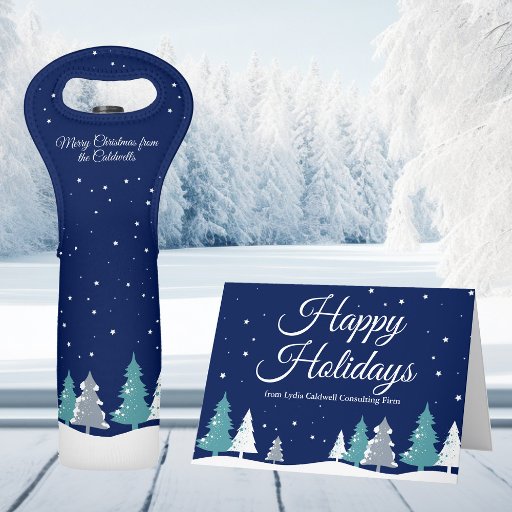 Beau ciel bleu minuit avec sapins de Noël décorent cette jolie plaque de papier de fête de Noël personnalisée pour les desserts. La neige longe la belle forêt et des flocons de neige blancs parsement dans l'air de nuit. Personnalisez ce joli décor pour un rendez-vous de vacances.