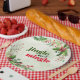 Jingler et mélanger et donner de votre mieux à vos amis et votre famille avec cette assiette de Noël où les branches vertes de saint et de pin forment des éléments d'angle contre un arrière - plan de lavage d'aquarelle verte. Idéal pour une fête de Noël, une fête de vacances ou un événement de vacances de bureau. Disponible avec des produits correspondants.