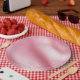 Assiettes En Carton Fête des mariées en cuir rose Faux