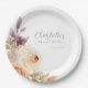 Plaques de papier de Fête des mariées Roses en feuillage de automne de Bohême. Ces assiettes en papier présentent un thème floral d'automne. Les tons oranges brûlées, terre cuite, violet, tan et beige sont intégrés dans le design floral rose. Les plaques en papier parfaites pour une douche nuptiale automnale.