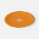 Assiettes en papier tendance pour fête personnalisée avec fond orange, grand monogramme centré et nom associé. Typographie minimaliste propre et simple. Entièrement personnalisable.