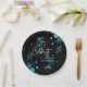 Une plaque de papier d'anniversaire moderne, élégant et glamour. Ce design présente une typographie vibrante "Fêtons" avec un bokeh en dégradé bleu sur un arrière - plan noir. Personnalisez et ajoutez les détails de votre fête. Faites de votre anniversaire un événement extraordinaire !