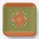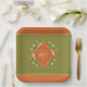 Assiettes En Carton Feuilles automnales orange et vert monogramme