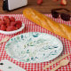 Assiettes En Carton Feuilles blancs verts
