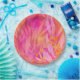 Des feuilles et des éléments botaniques aux couleurs vives se chevauchent dans les tons rose, orange et jaune contre un arrière - plan dynamique. La composition crée une atmosphère chaleureuse, joyeuse et énergique.