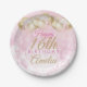 Un magnifique ballon rose vif et parties scintillant heureux 16ème anniversaire assiette de fête. Ce design féminin est la façon idéale d'aider quelqu'un à célébrer un joyeux 16e anniversaire (ou n'importe quel âge!) Personnalisez avec notre propre nom personnalisé. Typographie rose et or sur un effet bulle arrière - plan girly.