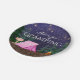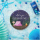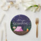 Fille glamping plaques de papier de fête d'anniversaire avec une tente rose mignonne et feu de camp sur un arrière - plan de forêt étoilé la nuit. Ces filles mignonnes campant des plaques de papier de fête d'anniversaire sont facilement customisées pour votre événement en ajoutant simplement votre texte.