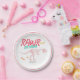 Ce modèle de plaque d'anniversaire pour filles mignonne et moderne comporte un squelette de dinosaure t-Rex. Les assiettes peuvent être personnalisées avec le nom de vos enfants - le parfait dinosaure rose et brillant fossile creuser la vaisselle thématique!