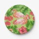 Assiettes En Carton Flamant rose et plantes tropicaux