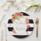 Assiettes En Carton Flamant rose tropical Baby shower en bande noire r
