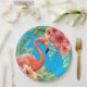 Assiettes En Carton Flamants roses d'aquarelle tropicale et Hibiscus