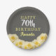 Fleur de rose jaune Plates d'anniversaire 70e. De belles roses jaunes. L'arrière - plan est gris tableau noir. Le texte est en blanc et jaune et est facilement personnalisable - personnalisez-le avec votre nom et votre âge. Parfait pour la fête d'anniversaire d'une femme à soixante-dixième.