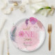 Fêtez le premier anniversaire de votre petite fille avec notre enchanteresse plaque de papier Wild One Birthday. Ce design enchanteur présente des feuilles tropicaux fleur sauvage et colorés, placés contre un arrière - plan d'aquarelle rose clair, créant un look fantaisiste et dynamique. Parfaites pour une célébration mémorable, ces plaques en papier marient magnifiquement le charme de la nature et l'élégance ludique, invitant les invités à se joindre à la joie et aux festivités de votre journée spéciale.