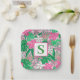 Assiettes En Carton Fleur tropicale Monogramme rose blanc vert Preppy